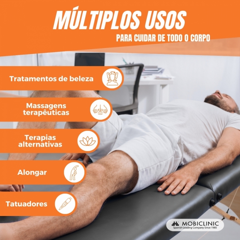 Existem muitos centros de ortopedia, fisioterapia, beleza, acupuntura, massagem, spa, reiki ou ginásios que optaram por adquirir este mesa de massagem de alumínio, pois o seu design é altamente valorizado esteticamente.