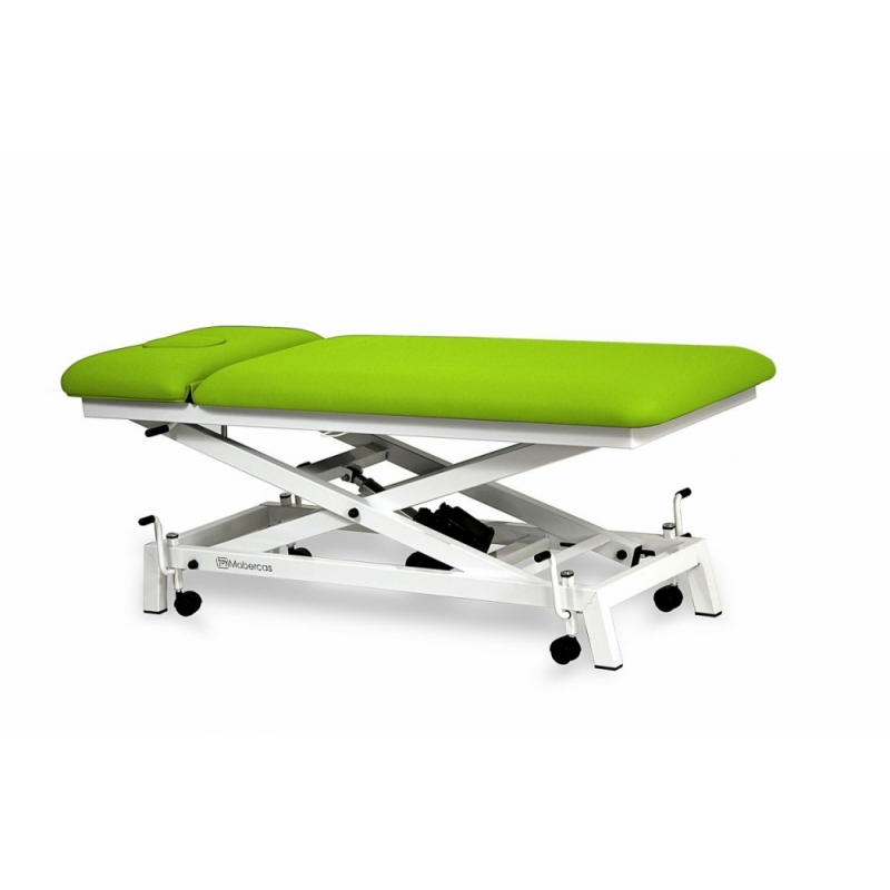 Maca elétrica para pediatria de 2 seções, com ascensão reta sem deslocamento lateral, tampão frontal e rodas retráteis.