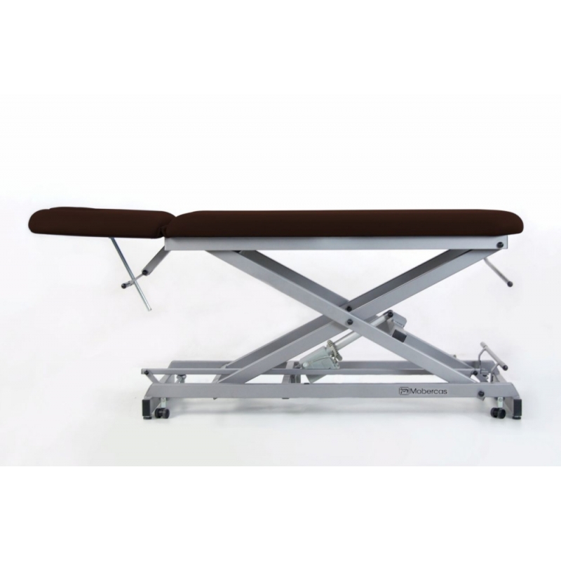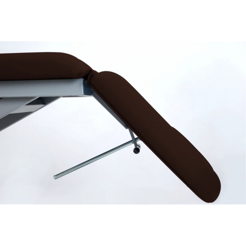 Mesa de exame elétrica de 2 seções com encosto reclinável negativo e elevação reta sem movimento lateral, porta-rolos, tampa frontal e rodas retráteis.