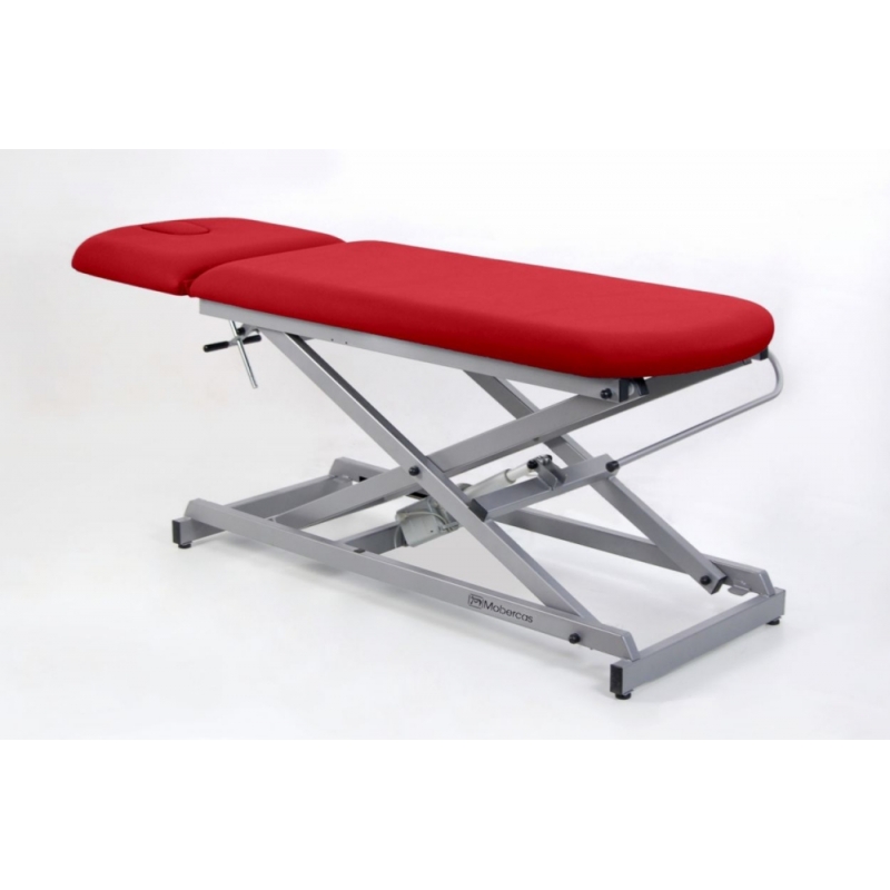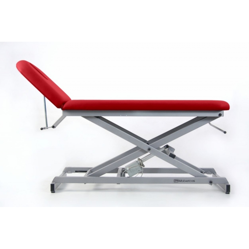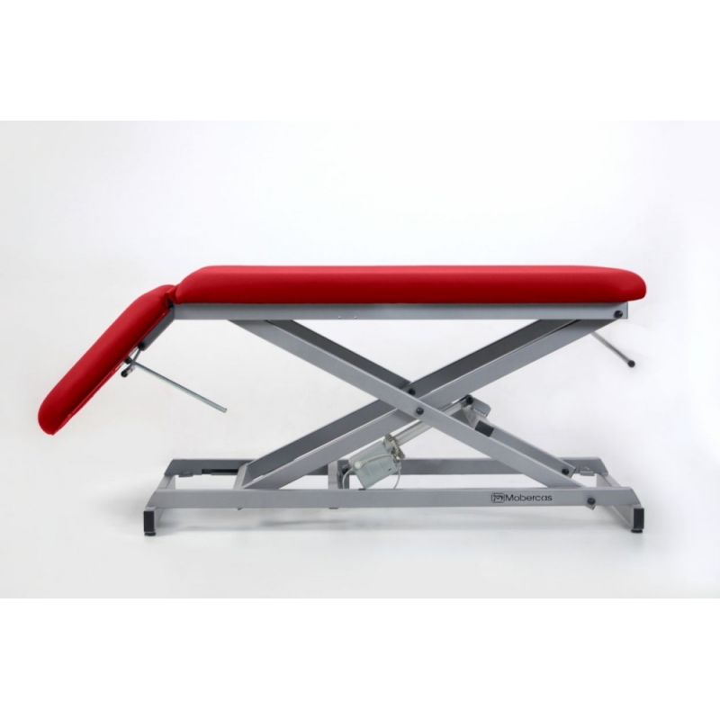 Mesa de exame elétrica de 2 seções, com elevação reta sem deslocamento lateral, porta-rolos e plug frontal.