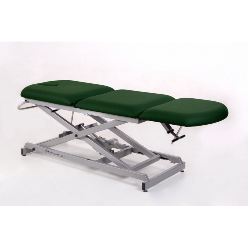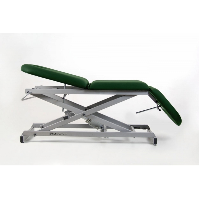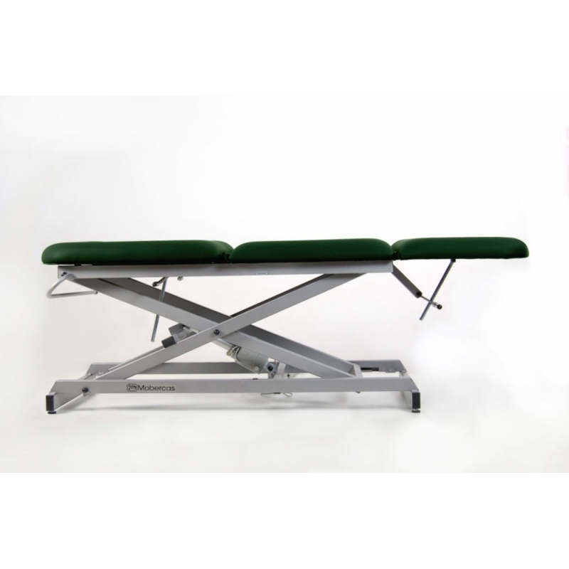 Maca elétrica tipo poltrona de 3 seções com elevação reta sem deslocamento lateral, porta-rolos e plug frontal.