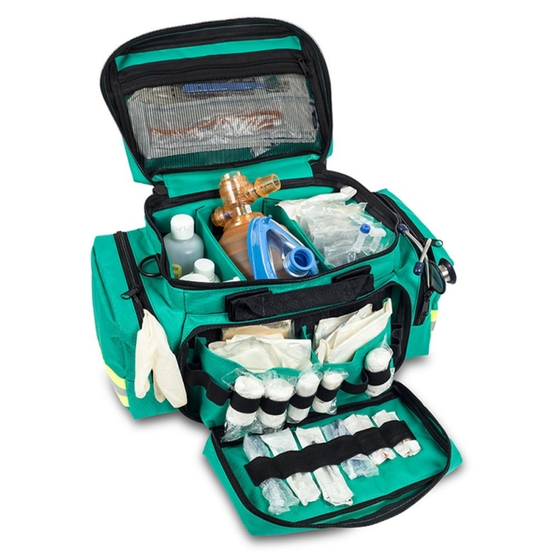 Mala de emergência com compartimentos internos ajustáveis e um compartimento de rede na aba para facilitar a organização do material médico, o que lhe permitirá localizar rapidamente os diferentes utensílios para assistência. A mochila de emergência é almofadada de forma a garantir a maior segurança do conteúdo.