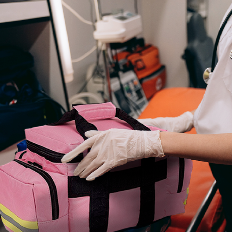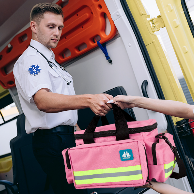 As emergências de saúde não conhecem horários, é por isso que a nossa mala de saúde inclui tiras refletoras de noite/dia para facilitar o trabalho dos profissionais de saúde.