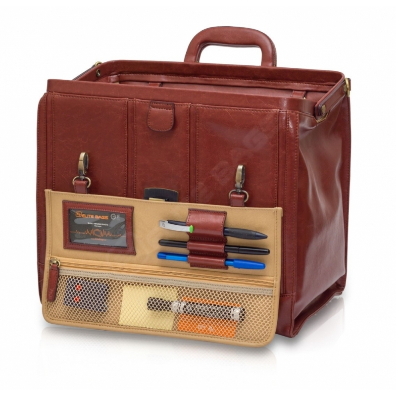 Esta mala tradicional para médicos da marca Elite Bags é ideal para consultas domiciliárias. Graças á sua excelente organização interna poderão conter todos os instrumentos e documentos necessários para o correto desempenho da sua função.