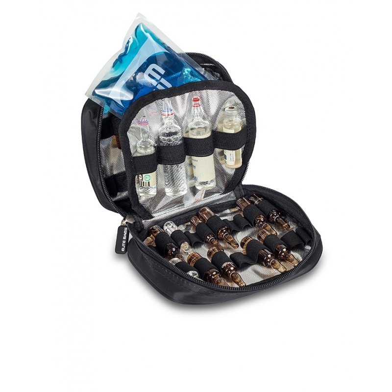 Amulario isotérmica médica sarja pretan ou garrafa 50 ampolas amarrado, separador central preenchido COM bandas bêbado e de Fixação