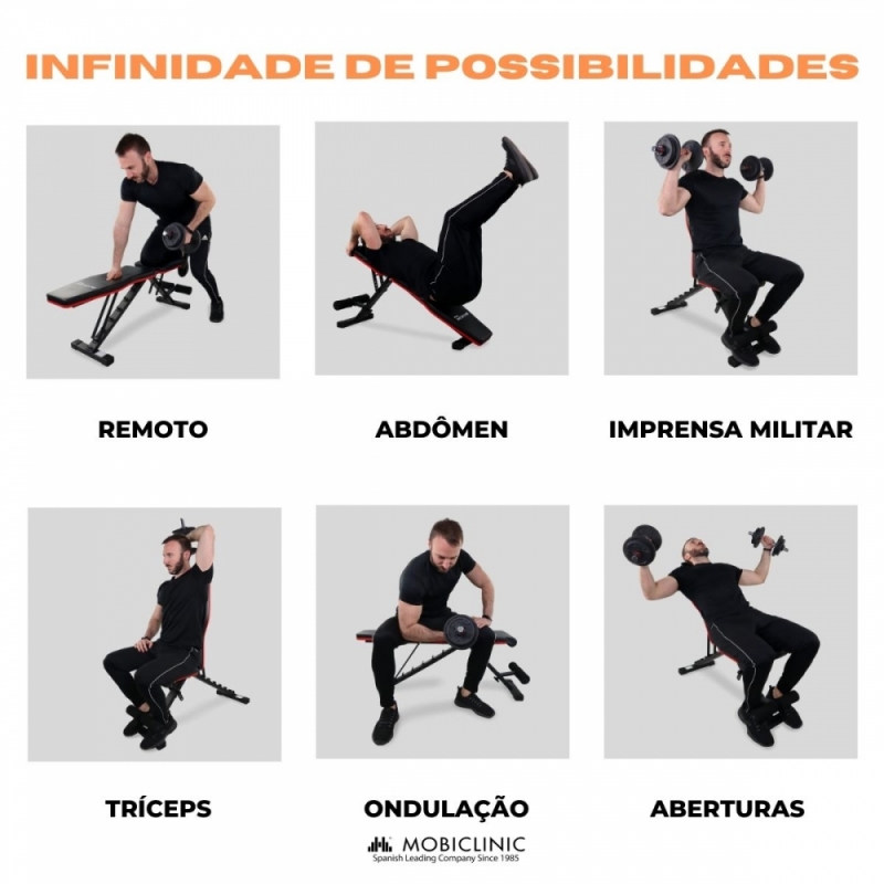 HOME GYM: Poderá utilizar este banco para completar os seus treinos no conforto da sua casa ou no jardim, graças ao seu design portátil e leve.