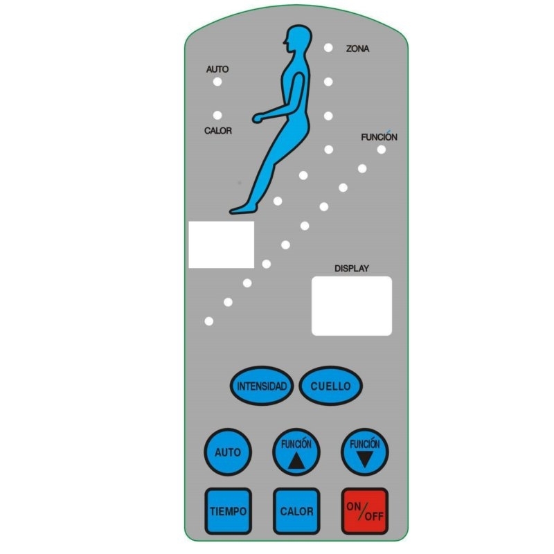 Por meio dos botões FUNÇÃO, pode escolher entre 10 tipos de vibração, em que as zonas de massagem se alternam por todo o corpo. Na última função, a vibração é constante em todo o corpo. O motor de vibração do pescoço pode ser desligado quando uma massagem completa é realizada premindo o botão do pescoço. Esta opção não pode ser operada de forma independente.