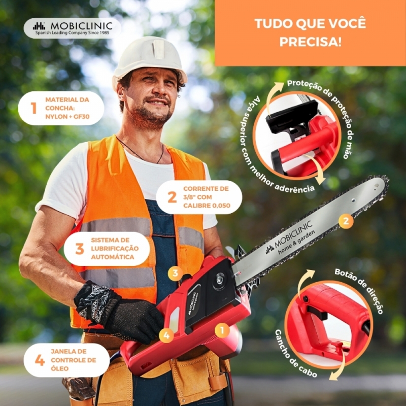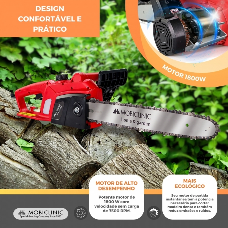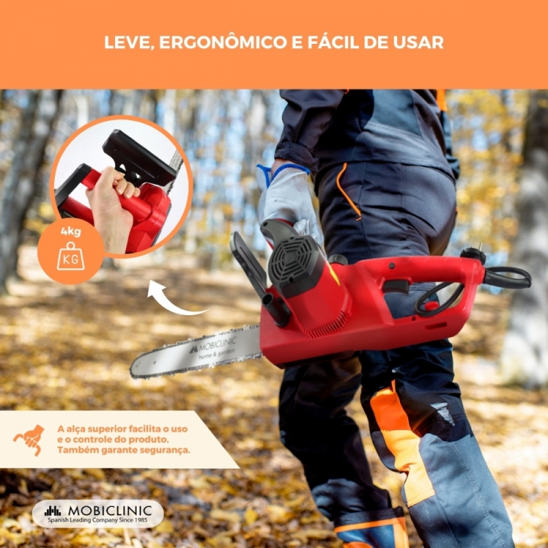 Utilize a motosserra nos seus trabalhos de jardinagem, derrubando árvores, arbustos, cortando lenha, troncos. Será o seu novo companheiro nos seus projetos de carpintaria e construção.