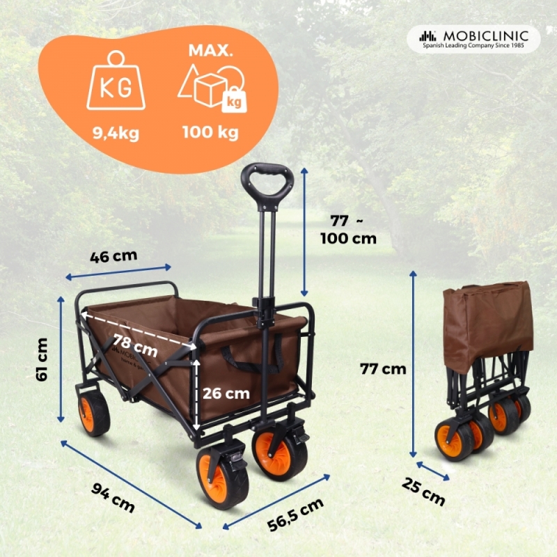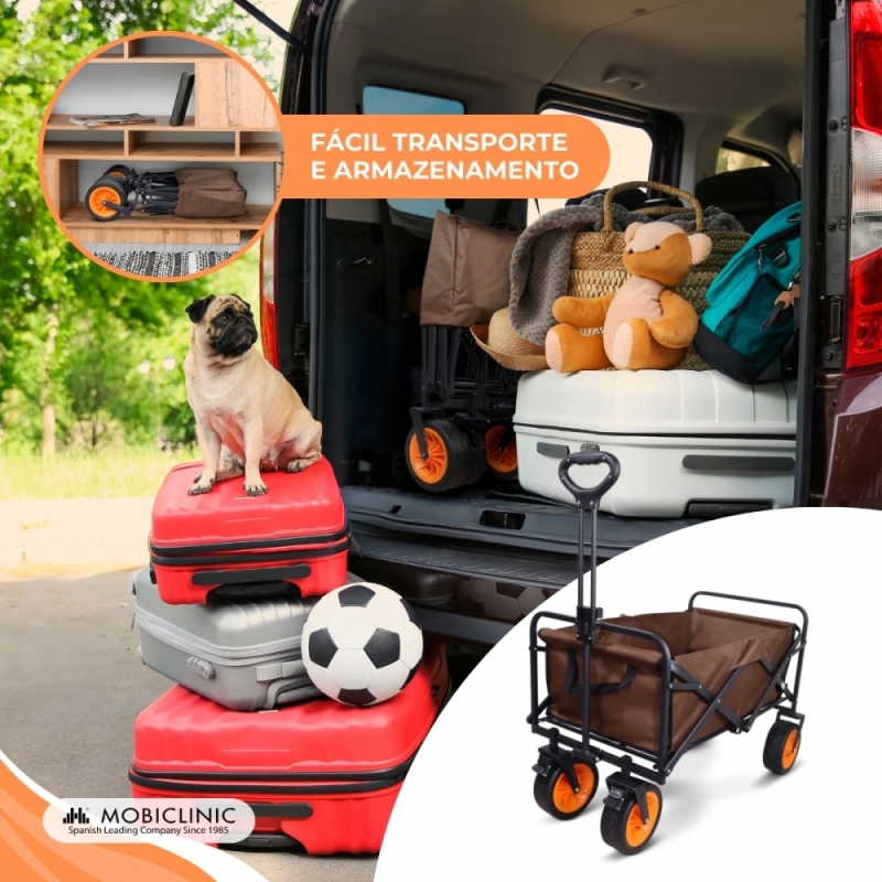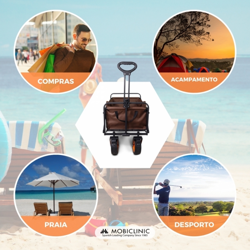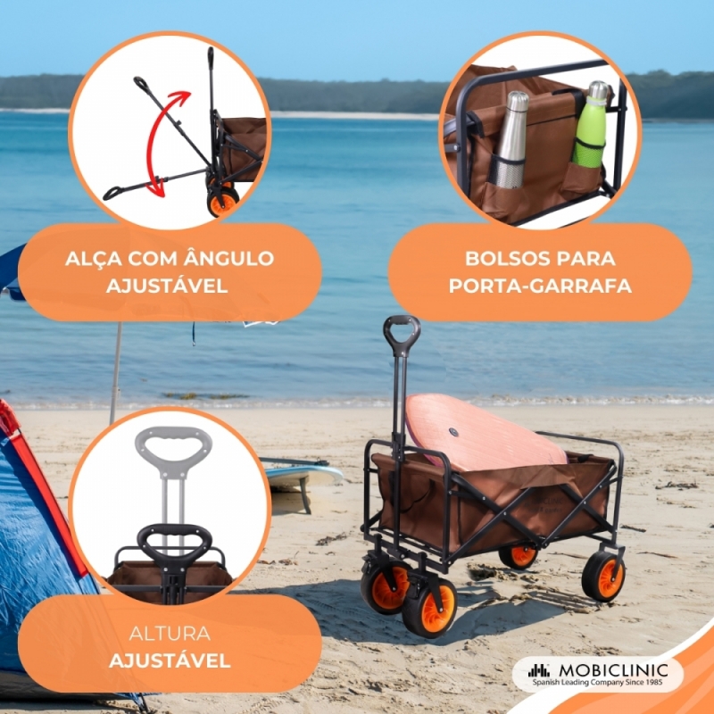Carrinho transporte jardim de praia | Alça ajustável |94x56,5x77cm | Dobrável | Rodas largas 360º | Duna Pro Plus | Mobiclinic