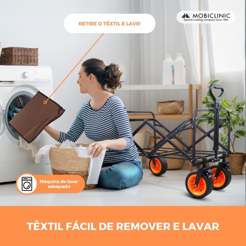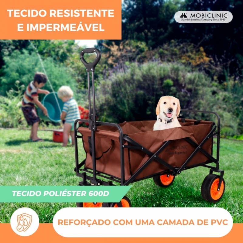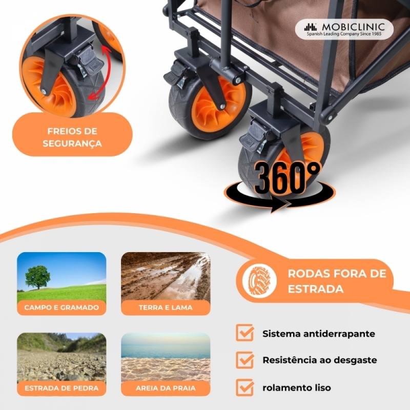 TODOS OS TERRENOS: O design do carrinho de carga Duna se destaca pela versatilidade. Com a sua capacidade de enfrentar vários terrenos, desde superfícies planas a terrenos mais acidentados , este carrinho de transporte torna-se a escolha ideal para atividades ao ar livre e diárias.