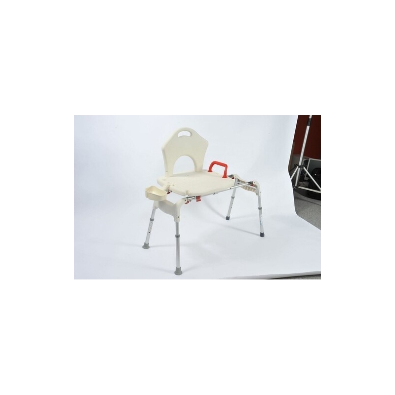 Com este banco, a pessoa com mobilidade reduzida ou limitada senta-se e desliza para o centro da banheira sem ter de se levantar.