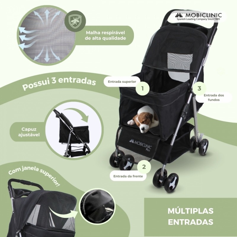 Quer o seu cão seja mais velho, tenha alguma deficiência ou simplesmente não possa/não goste de caminhar longas distâncias, este carrinho foi projetado para proporcionar uma experiência de caminhada tranquila e agradável. O peso máximo suportado do animal não pode ultrapassar 15 kg, sendo indicado para cães de porte XS/S.