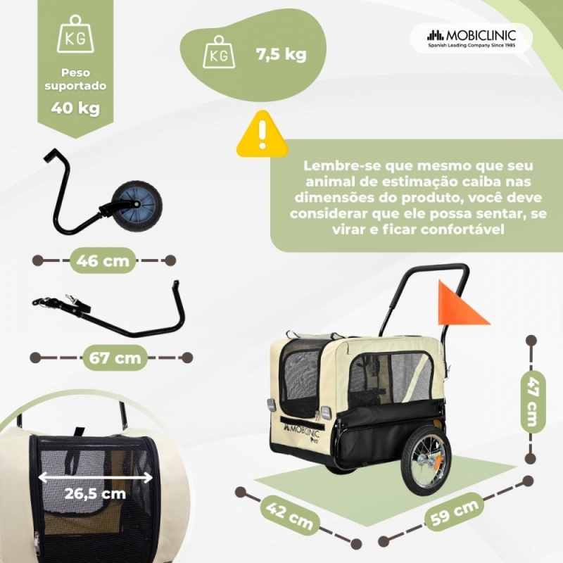 2 EM 1: CAIXA DE TRANSPORTE PARA CÃES E CARRETO PARA BICICLETA: Este trailer para cães se transforma facilmente em um carrinho de bebê graças à sua roda dianteira removível. Ideal para caminhadas ou passeios de bicicleta confortáveis com seu pet.