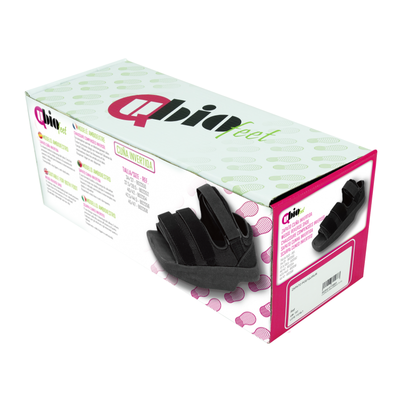 Sapato pós-cirúrgico com salto invertido com cunha | Fecho de velcro | Cor preta | Vários tamanhos