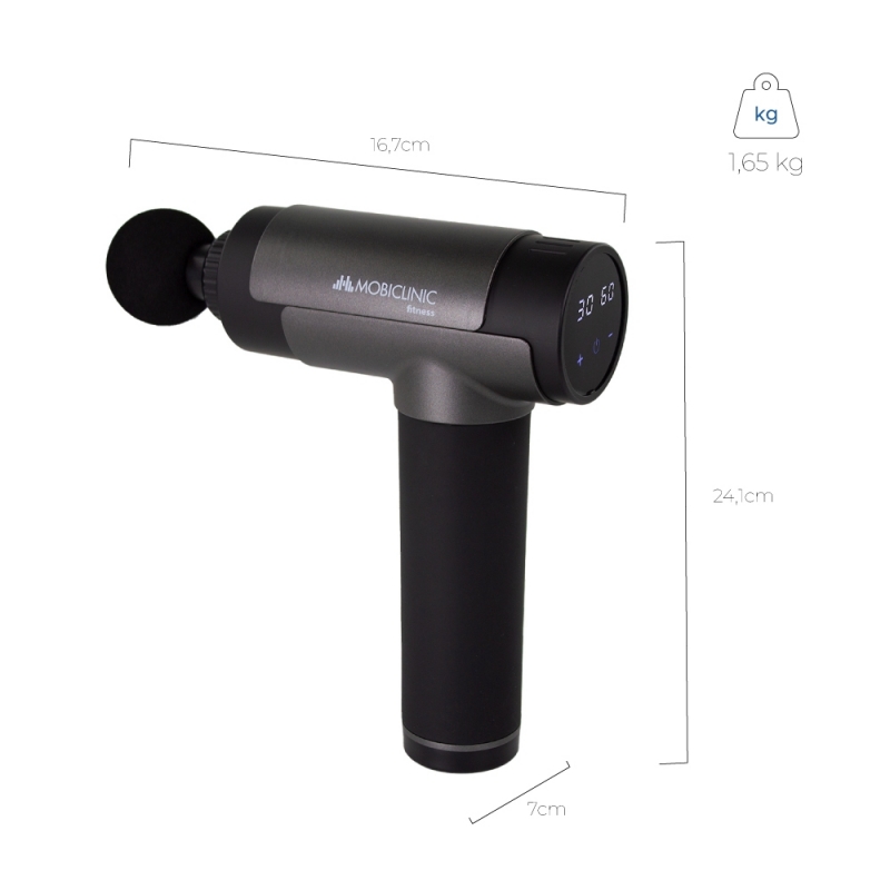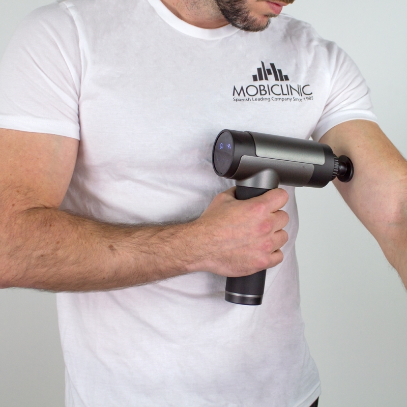Com a pistola de massagem muscular, é possível realizar massagens de percussão. Este tipo de massagem consiste em movimentos constantes que proporcionam inúmeros benefícios como a redução da dor, aumento do fluxo sanguíneo ou redução de espasmos musculares, entre outros.