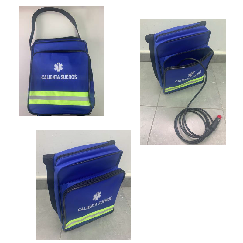 Saco aquecedor de soro a 12V com tomada de isqueiro para ambulância. Permite aquecer até 2 soros ao mesmo tempo a uma temperatura constante de 37º. Ele tem um suporte para pendurar no suporte de soro ou na âncora de soro da ambulância. Também possui uma alça de ombro para facilitar o transporte fora do veículo.