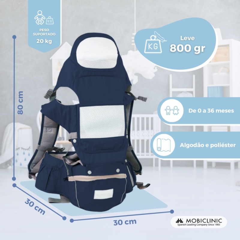 Porta-bebês 6 em 1 | Respirável | 0-36 meses | Alças ajustáveis | Algodão | Bolso | Azul | Moley | Mobiclinic