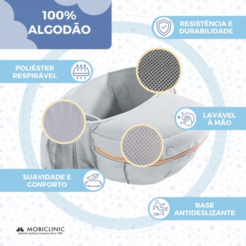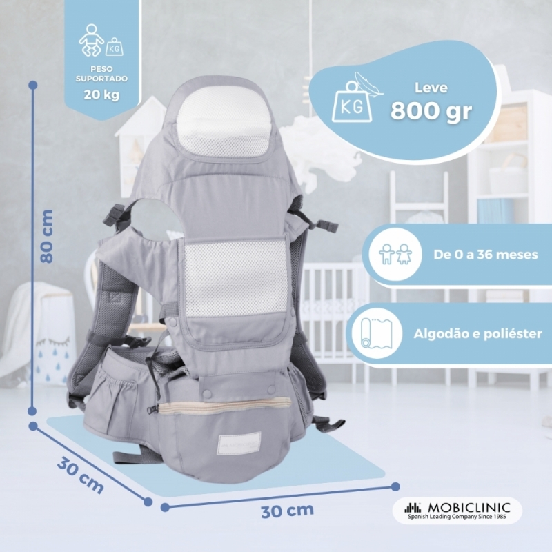 Porta-bebês 6 em 1 | Respirável | 0-36 meses | Alças ajustáveis | Algodão | Bolso | Cinza | Moley | Mobiclinic