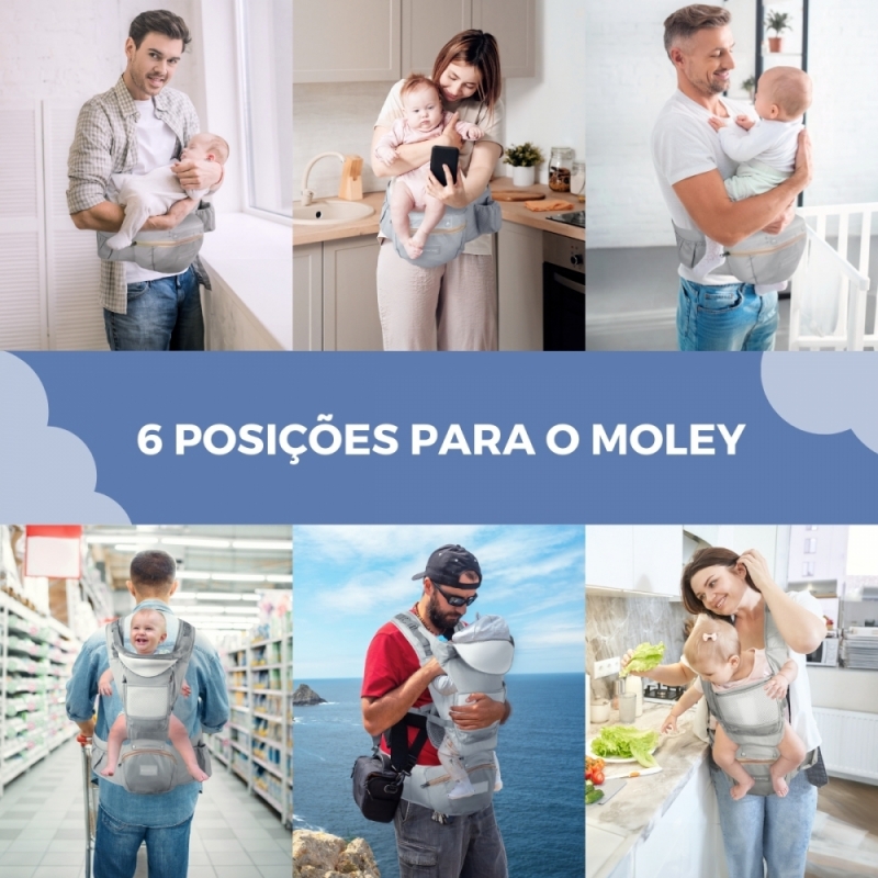 Conheça o porta-bebês Moley , uma solução inteligente que alia flexibilidade, conforto e qualidade para tornar o transporte do seu bebê uma experiência incomparável . A parte superior da mochila dobra-se facilmente, proporcionando maior ventilação ao bebê sem retirá-la completamente, adaptando-se às preferências climáticas e ao conforto do pequeno.