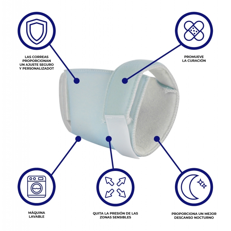 INDICADO PARA: O protetor de calcanhar antiescaras é indicado para pessoas com lesões na região do cotovelo ou calcanhar que devem permanecer algum tempo imobilizadas, seja sentadas ou na cama.