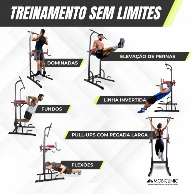 O MultiFit é uma estação de flexões que oferece uma ampla variedade de exercícios para um treino completo. É um equipamento multifuncional para exercitar tanto a parte superior quanto a inferior do corpo, tonificando o abdômen e os ombros, entre outros grupos musculares. Suas múltiplas funções oferecem benefícios significativos para uma perda de peso rápida e fácil ou para fortalecer os músculos das costas, corrigindo e melhorando a postura.
