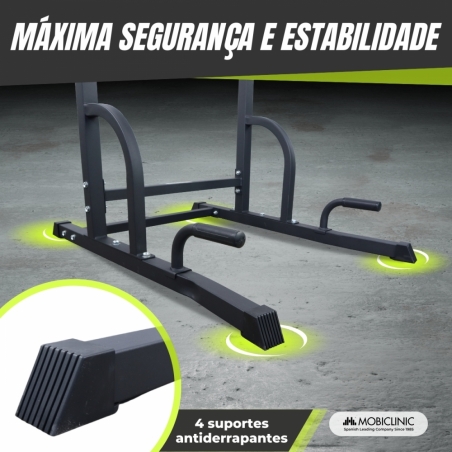 RESISTENTE E SEGURO: Sua estrutura em aço resistente e seu design cuidadoso fazem do MultiFit um equipamento completamente estável e seguro durante o uso, graças aos seus pontos de apoio.
