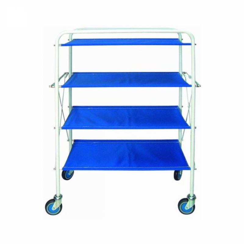 Carrinho dobrável de ferro, pintado com epóxi, branco, com 4 bandejas.