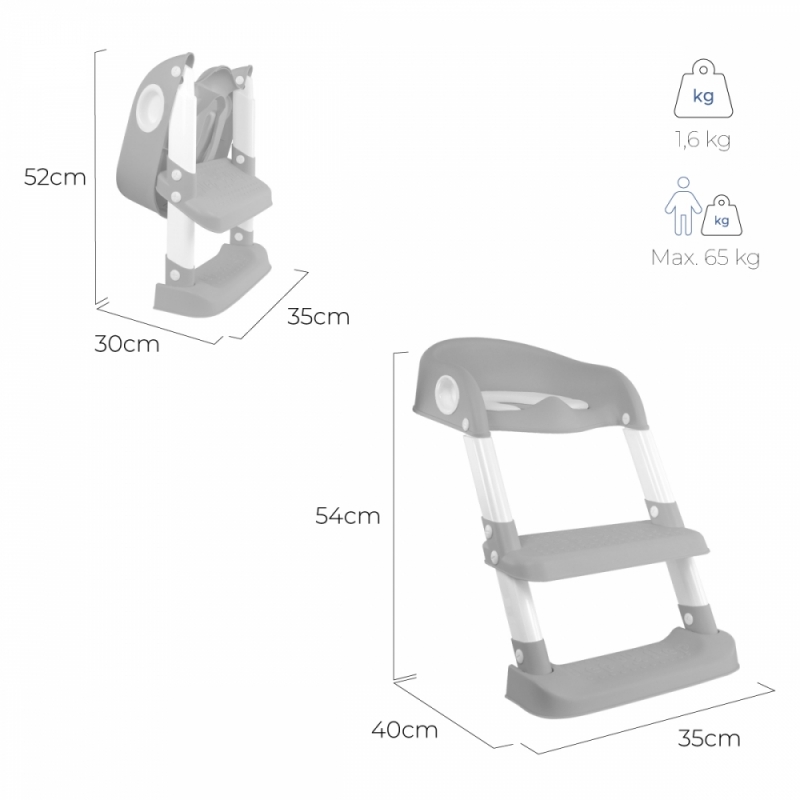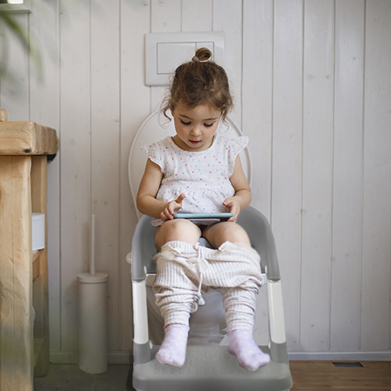 Cadeira de WC infantil | Com escadas | Anti-derrapante | Ajustável | Dobrável | Lala | Cinza e branco | Mobiclinic