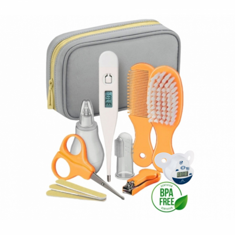 - O Kit Cuidados Bebé Mobiclinic é o mais completo e útil conjunto de peças para o cuidado e higiene dos mais pequenos que poderá encontrar. Seu estojo portátil contém um termômetro digital, um pente, uma escova de cerdas macias, uma tesoura de ponta redonda, um cortador de unhas, um aspirador nasal, uma lixa de unha e um dedal para escova de dentes. Todos os artigos são da mais alta qualidade e são pensados para a higiene e proteção das crianças.