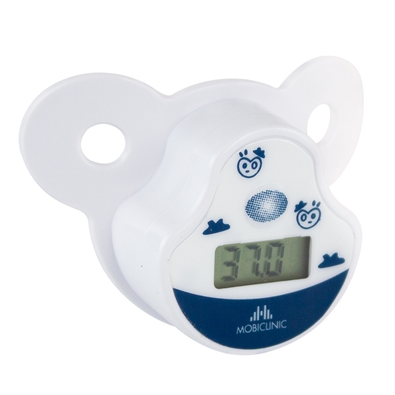 - O termômetro em forma de chupeta oferece leituras de temperatura rápidas, seguras e confiáveis. Um alarme sinaliza que o processo de medição está completo quando a temperatura máxima é atingida. Além disso, possui alarme específico e automático quando a temperatura atinge 37,8 ºC e armazena automaticamente na memória a última medição, o que permite ao usuário acompanhar o controle.