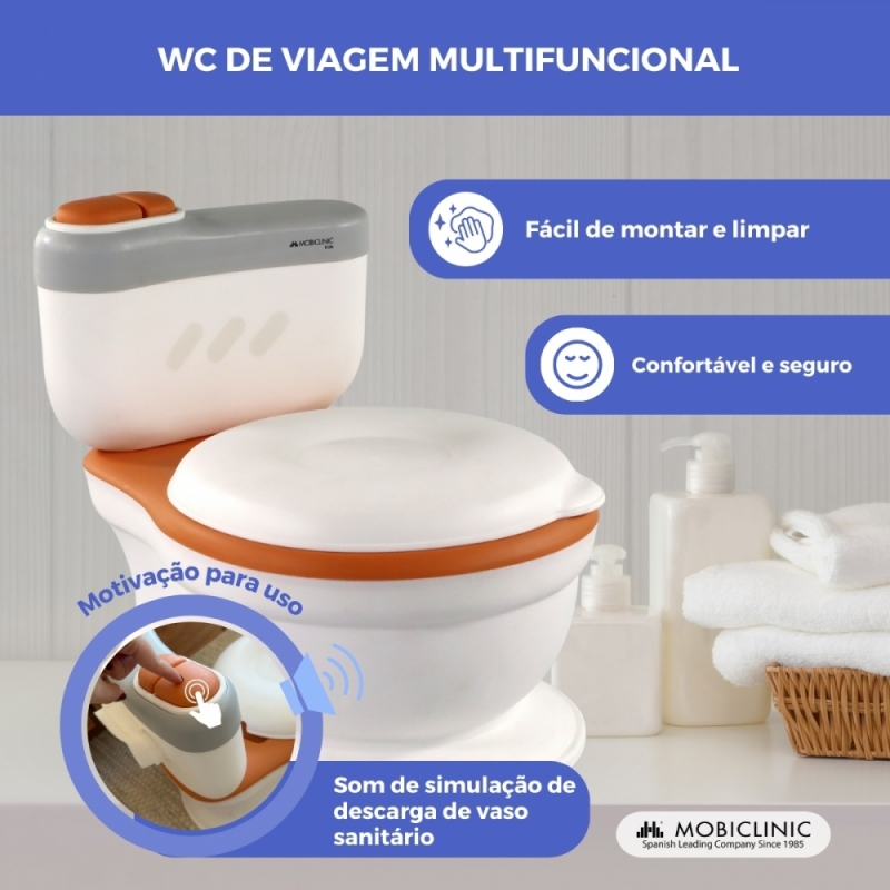 Banheiro infantil | Com som | Balde removível | De 1 a 6 anos | Antiderrapante | Laranja | ToiKid | Mobiclinic