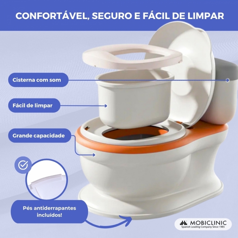 É um produto muito fácil de limpar, bastando retirar o balde removível . Com o ToiKid você terá um investimento de longo prazo graças ao seu monitoramento (de 1 a 6 anos) para que o bebê se adapte ao seu uso por muito tempo.