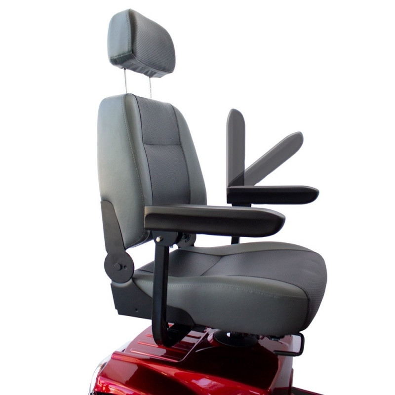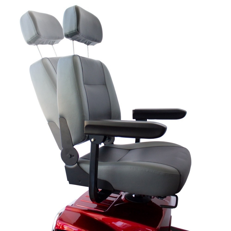 - Apoios de cabeça dobráveis e apoios de braços ajustáveis em largura e inclinação garantem ao utilizador um passeio relaxante e confortável.