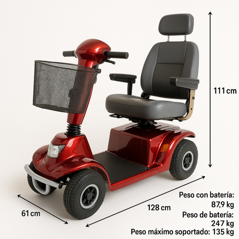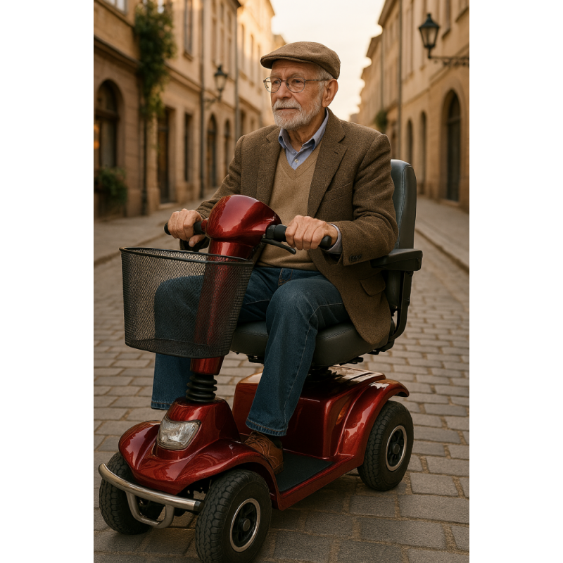 Scooter elétrico para deficientes | 4 rodas | Premium | Desmontável | Auton. 45 km | 12V | Bordeaux | Libra | Mobiclinic