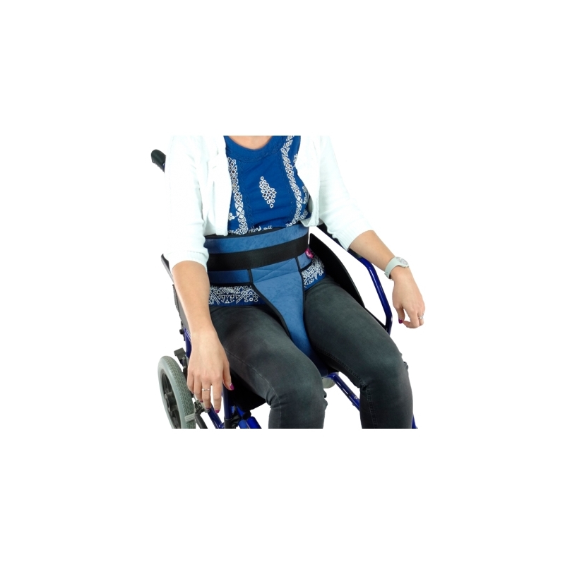 Cinto perineal com fivelas adaptáveis a todos os tipos de cadeiras de rodas.