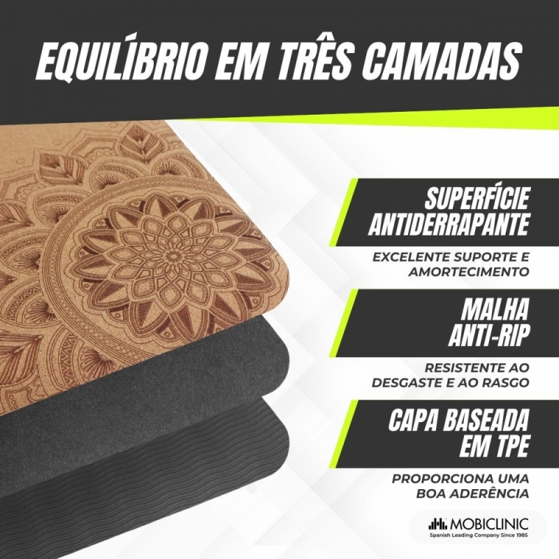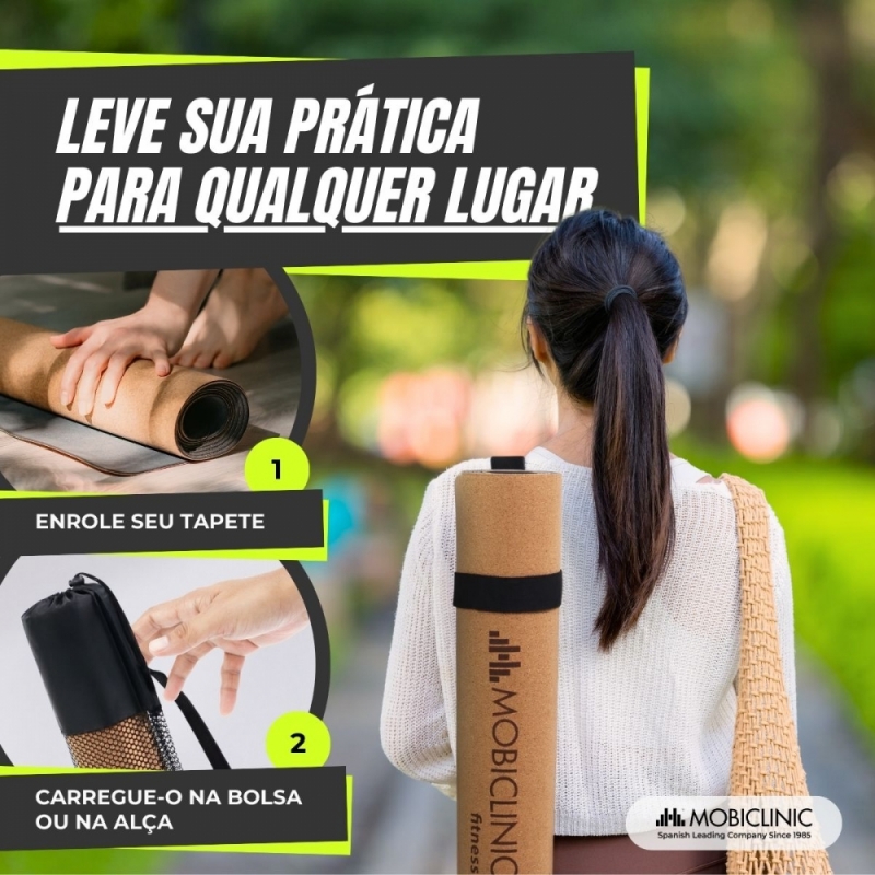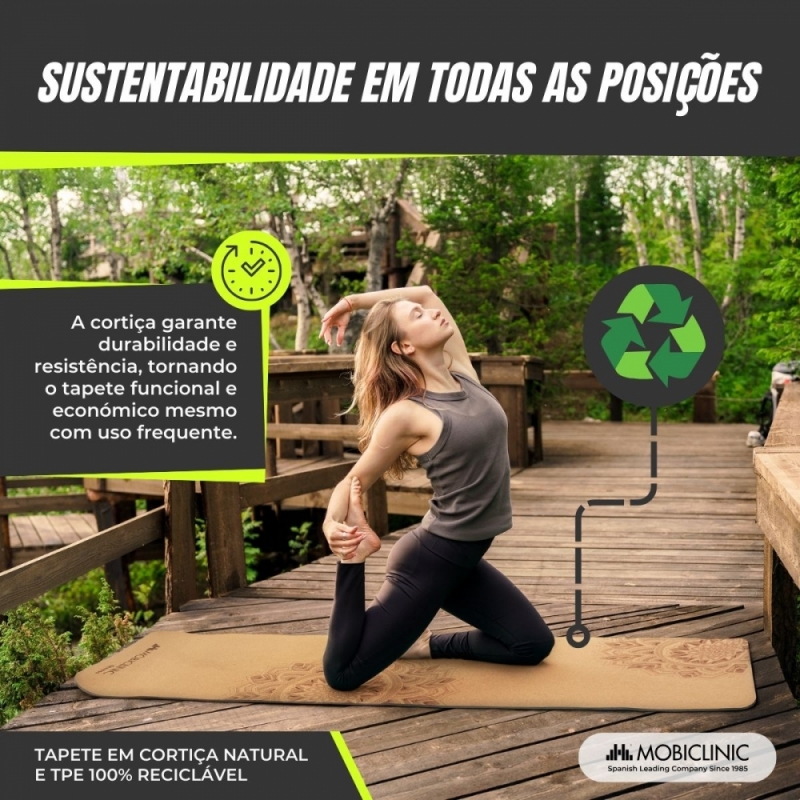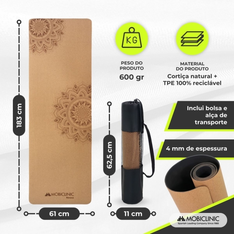 - Materiais: Cortiça natural + TPE 100% reciclável