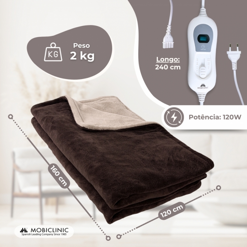 Cobertor elétrico que proporciona um sono tranquilo e seguro a uma temperatura agradável e protege do frio e da humidade. Tem um botão de controlo digital e regulação de 3 ajustes de aquecimento com indicador de nível de LED. Tem uma função de desligamento automático após aproximadamente 3 horas de funcionamento.