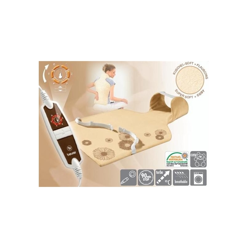 Almofada elétrica dorsal/cervical respirável, flexível e agradável ao toque. Seu design ergonômico e cinto permitem o máximo ajuste. Funciona com um inovador sistema de controle de temperatura LED com luz. Interruptor de 6 potências e sistema de aquecimento ultrarrápido. Função de desligamento automático após aproximadamente 90 minutos de operação. Proteção contra o superaquecimento. Elemento térmico macio e fofo feito de microfibra de pelúcia. Lavável na máquina graças ao seu cabo de alimentação removível. Capa de algodão macio removível e lavável na máquina a 30°C.