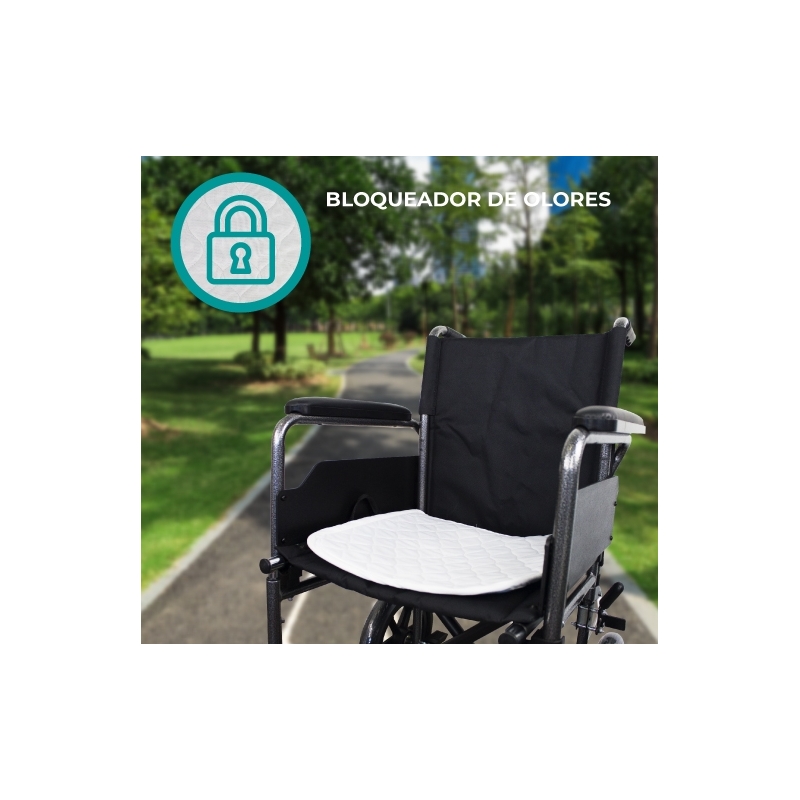 Este empapador de cadeira de rodas pode ser utilizado em caso de urina na cama e em situações de transpiração excessiva, uma vez que previne o excesso de humidade na pele do paciente. É uma proteção respirável, lavável, impermeável e fácil de encaixar e ajustar na cadeira. Graças à sua composição em 4 camadas, consegue-se a correta absorção de líquidos e fluidos, mantendo a pele do paciente limpa e seca.