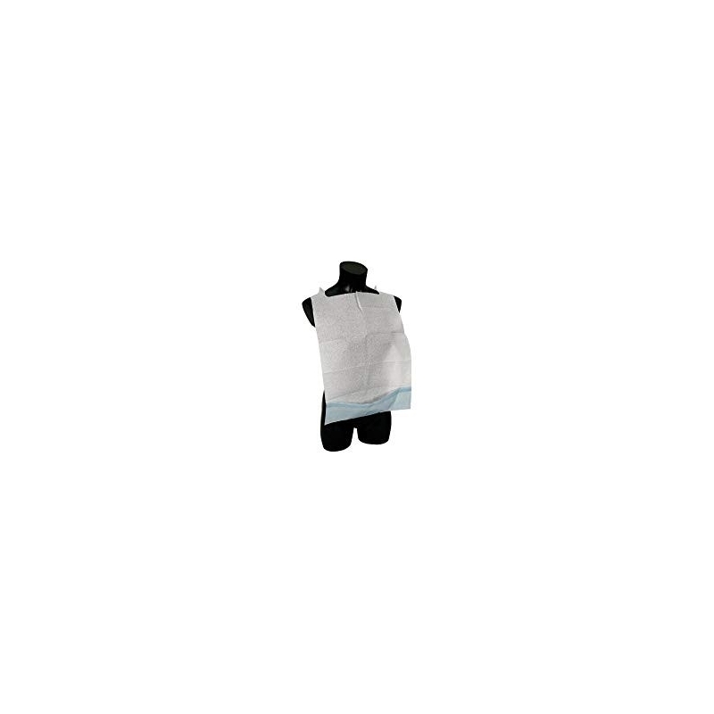 O babete de higiene descartável é um babete para adulto feito a partir de uma camada de papel branco absor-vente com um suporte de película de PE impermeável. Ao mesmo tempo, estes babetes para adultos têm um bolso no fundo para manter a higiene e um laço na parte de trás do pescoço para fixação.