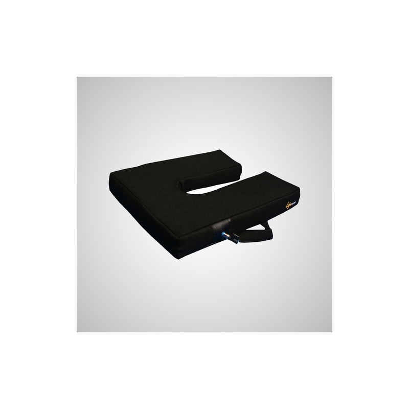 Almofada anti-escaras estética, confortável, resistente e confiável, com capa externa lavável, antiderrapante e com certa resistência ao fogo. Não desliza no assento. Adapta-se facilmente às cadeiras de rodas existentes no mercado. Embalado em uma caixa com alça para fácil transporte e armazenamento. Perfil em ferradura. É composto por um sistema de ar regulável por meio de uma válvula de corte e com uma base de espuma ou espuma. Sistema de válvula para regulação do ar interno: adapta a almofada de acordo com o peso e características do paciente. Baseado no " princípio de flotação ". Com tampa externa M1 lavável, antiderrapante e ignífuga, com abertura simples tipo velcro e alça para fácil manuseio. Extremamente leve. Conforto personalizado para cada usuário. Uso recomendado até 100Kg.