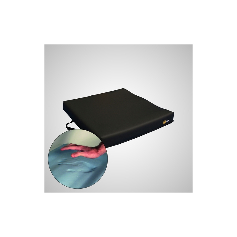 Almofada anti-escaras estética, confortável, resistente e confiável, com capa externa lavável, antiderrapante e com certa resistência ao fogo. Não desliza no assento. Adapta-se facilmente às cadeiras de rodas existentes no mercado. Embalado em uma caixa com alça para fácil transporte e armazenamento. Perfil quadrado. É feito de material viscoelástico. Possui uma elegante capa externa preta, hidrofóbica, antiderrapante e retardante de fogo: retardante de chamas e respirável, com uma abertura de zíper simples tipo U e alça para fácil manuseio. Extremamente leve e fácil de limpar. Conforto personalizado para cada usuário. Uso recomendado até 100Kg.
