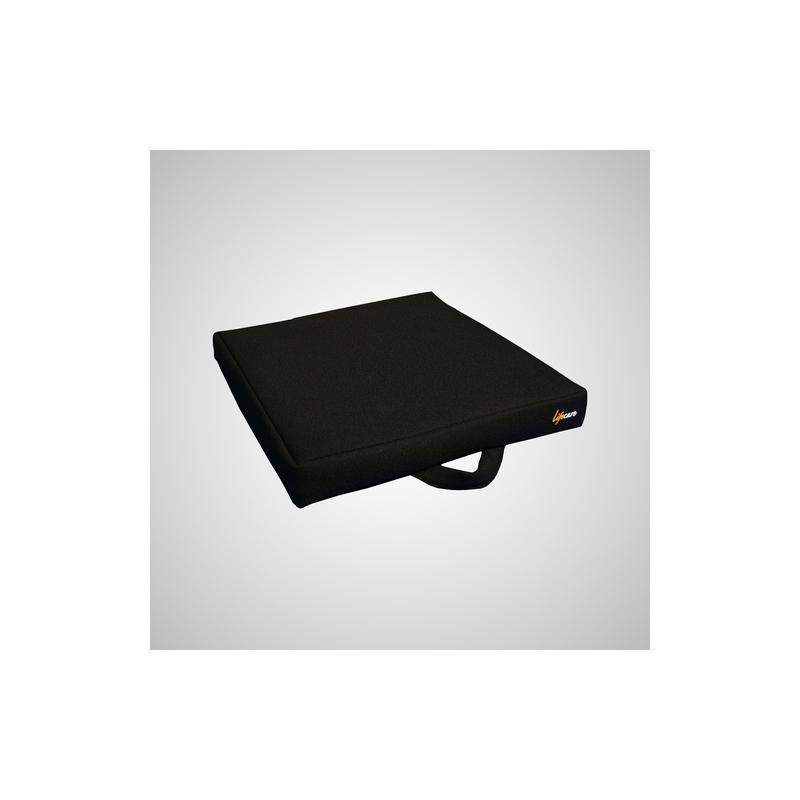 Essa almofada de alívio estético, confortável, durável e lavável fiableviene com uma manga externa, antiderrapante e alguma resistência ao fogo (retardador de fogo M1), que também traz uma alça para fácil manuseio. Não desliza no assento e adapta-se facilmente às cadeiras de rodas do mercado. Embalado em uma caixa com alça para fácil transporte e armazenamento. Esta almofada anti-escaras de perfil quadrado é feita de uma espuma de células abertas através da qual um líquido viscoso flui. Baseado no "princípio de flotação". Uso recomendado até 100Kg. Tampa externa com abertura simples tipo velcro.
