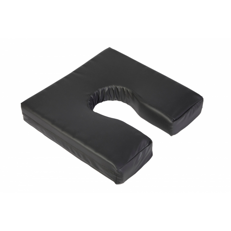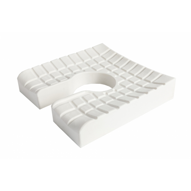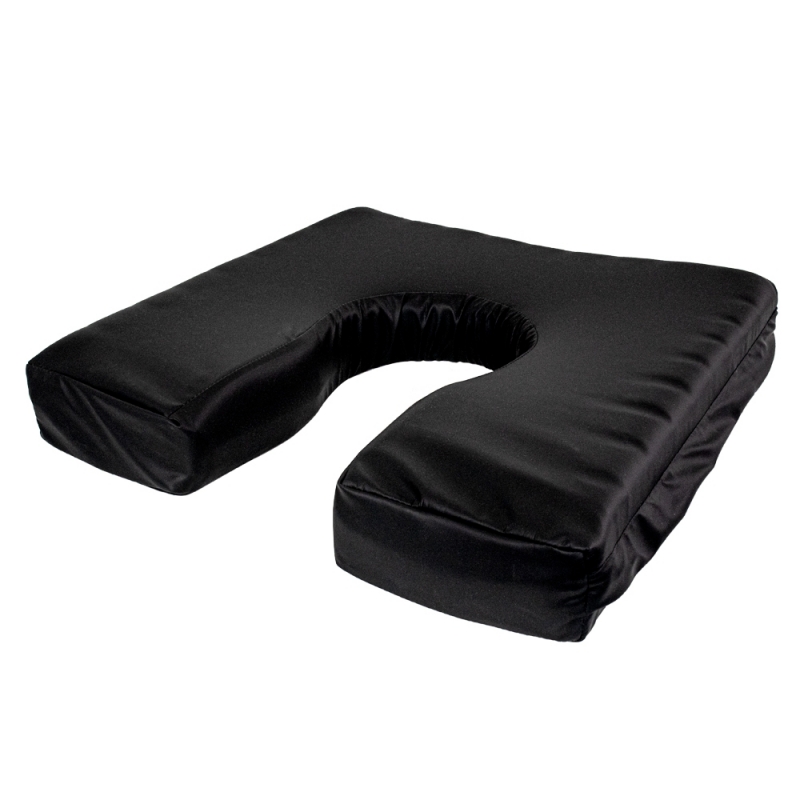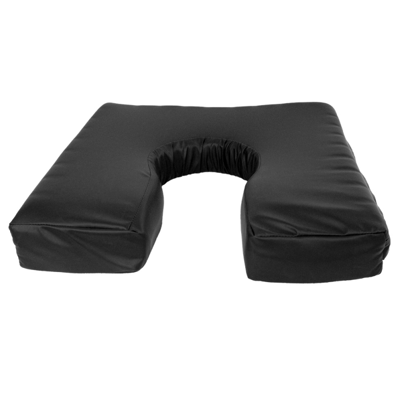 Esta almofada em forma de ferradura ajuda a prevenir escaras em pessoas que permanecem sentadas durante períodos de tempo mais longos.