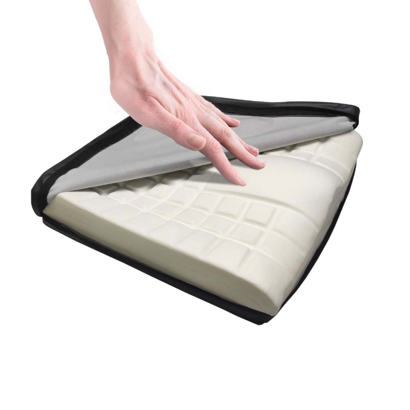 Esta almofada anti-escaras de espuma viscoelástica de alta densidade injetada tem propriedades de ""memória de forma"" ou ""memória do corpo"" e design anatómico, que é muito eficaz na distribuição do peso do usuário e evita pressão excessiva. Isto proporciona uma estabilidade pélvica adequada.